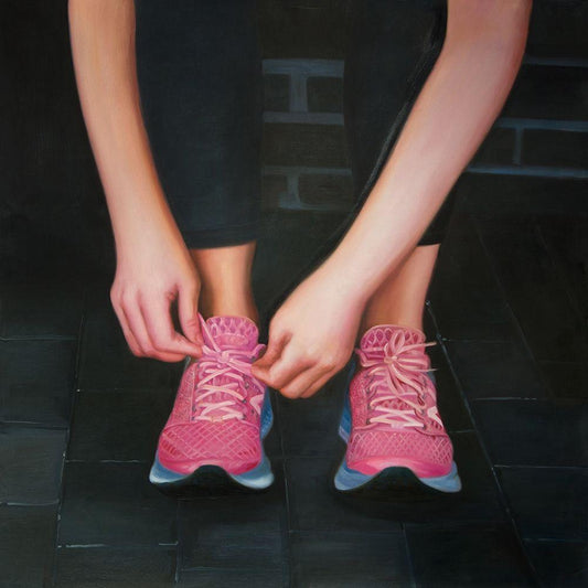 Hockey Player ties his Skates White Modern Wood Framed Art Print by Atelier B Art Studio