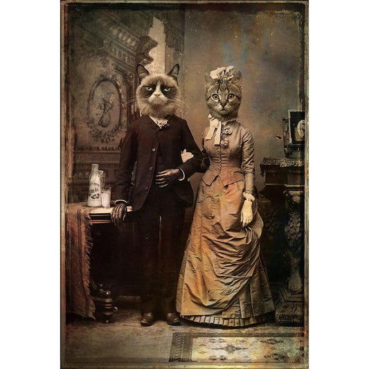 Cat Couple White Modern Wood Framed Art Print by DDiArte