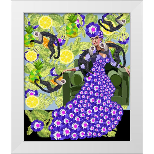 Frida in the Garden White Modern Wood Framed Art Print by Rakos, Lynnda