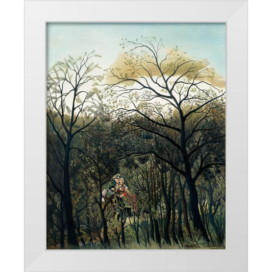 Rendezvous In The Forest White Modern Wood Framed Art Print by Pictufy