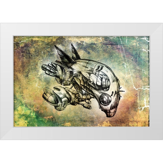Space ship art White Modern Wood Framed Art Print by Kulik, Rafal