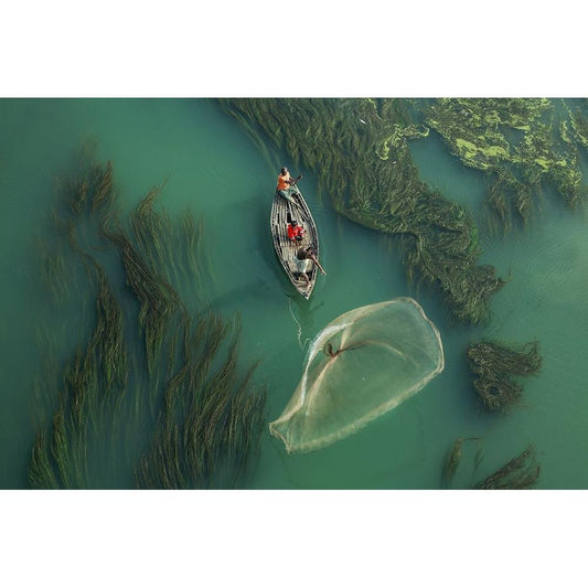 Fishing In The Algae RIVer White Modern Wood Framed Art Print by Amdad Hossain, Muhammad