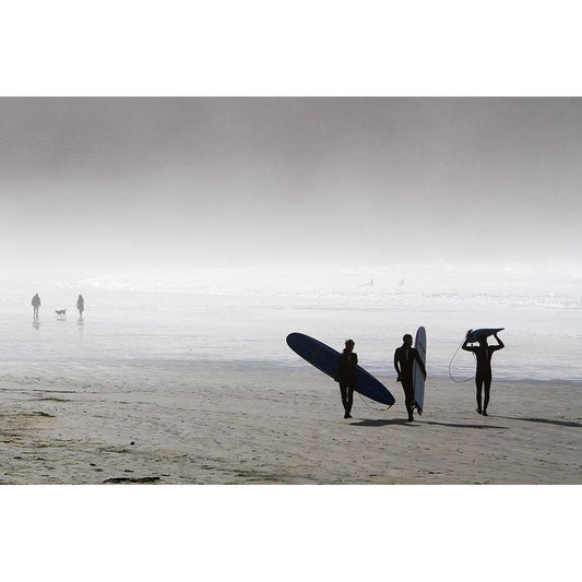 Surfing Time In A Foggy Day White Modern Wood Framed Art Print by Erkmen, Ugur