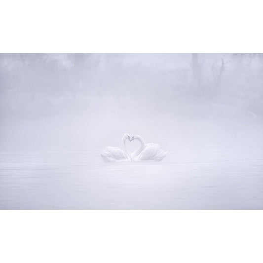 Love In The Foggy Morning White Modern Wood Framed Art Print by Zhang, Joan