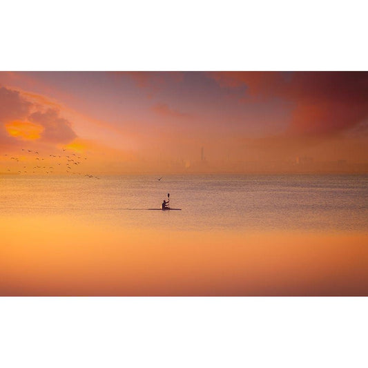 Albufera Kayaking At Sunset 7D17 White Modern Wood Framed Art Print by joanaduenas