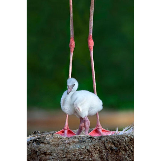 Caribbean Flamingo Chick White Modern Wood Framed Art Print by Ortega, Xavier