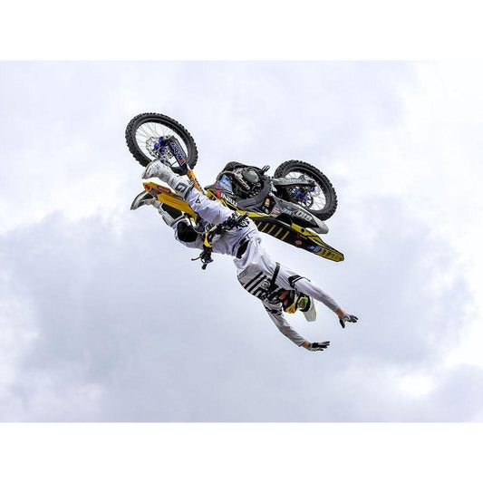 Freestyle Motocross White Modern Wood Framed Art Print by Baumann, Franz