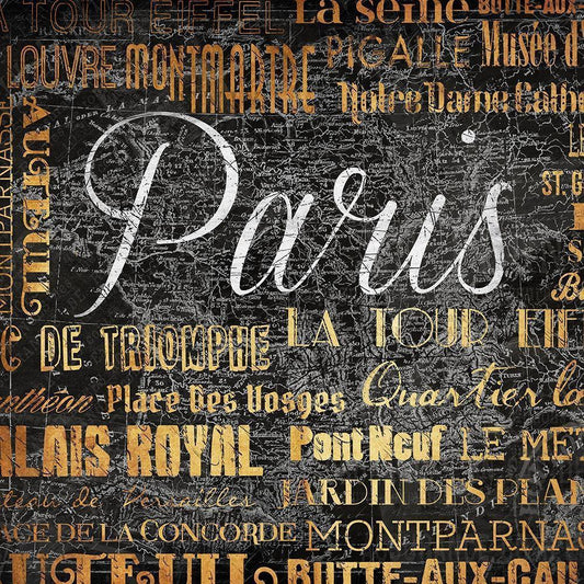 Paris Text Gold Ornate Wood Framed Art Print with Double Matting by Grey, Jace