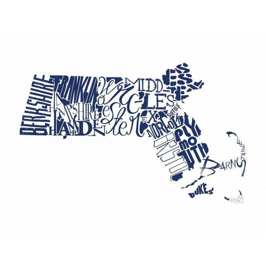 Massachusetts Navy Gold Ornate Wood Framed Art Print with Double Matting by Grey, Jace