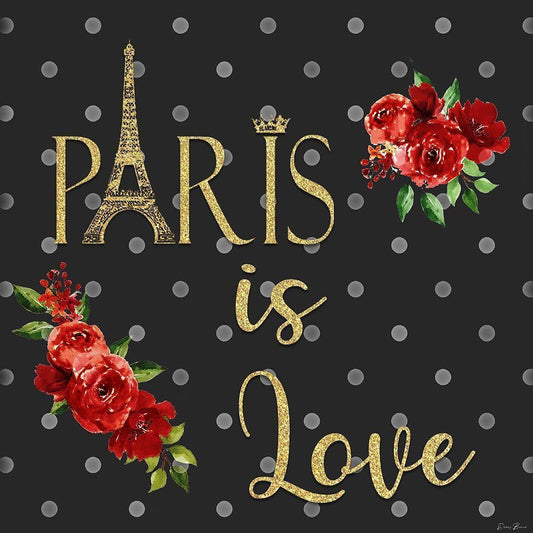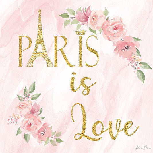 Paris is Love 1 Gold Ornate Wood Framed Art Print with Double Matting by Brown, Denise