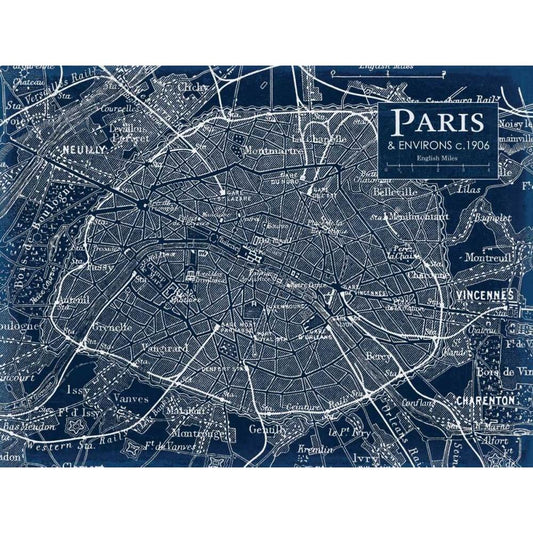 Map of Paris Gold Ornate Wood Framed Art Print with Double Matting by Bailey, Ann
