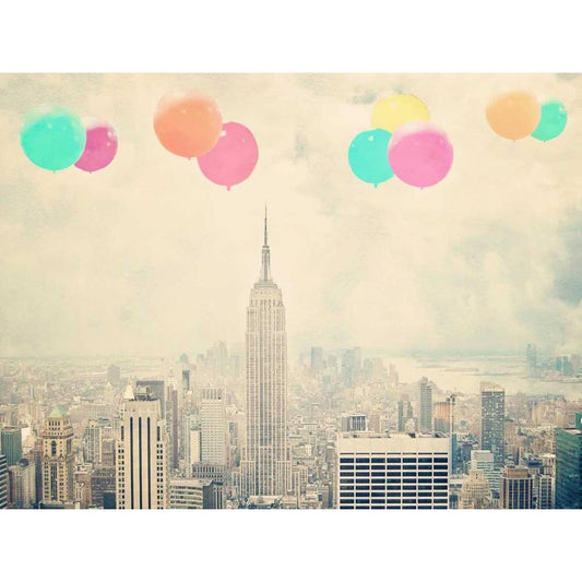 NYC Balloons With Clouds Gold Ornate Wood Framed Art Print with Double Matting by Davis Ashley
