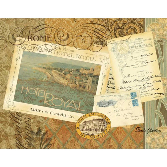 Grand Hotel Rome Gold Ornate Wood Framed Art Print with Double Matting by Gladding, Pamela