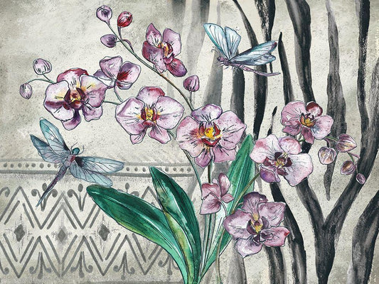 Boho Orchid landscape White Modern Wood Framed Art Print with Double Matting by Tre Sorelle Studios