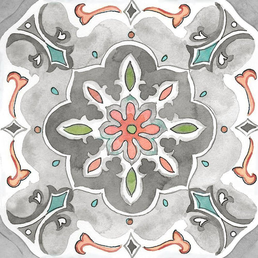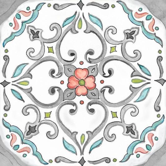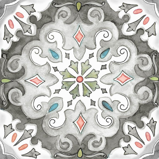 Jewel Medallion Gray IV White Modern Wood Framed Art Print with Double Matting by CoulterCynthia