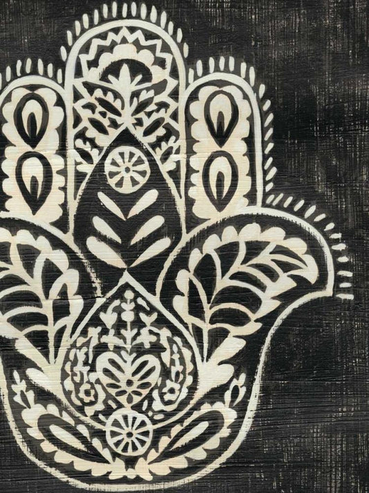 Night Hamsa I White Modern Wood Framed Art Print with Double Matting by Zarris, Chariklia