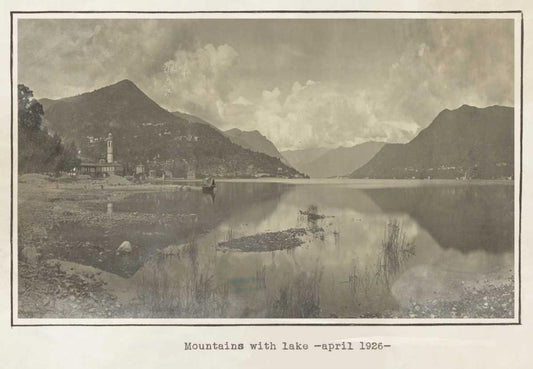 Mountains and lake White Modern Wood Framed Art Print with Double Matting by Waltz, Anne