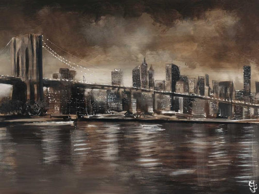 NY Brooklyn Bridge White Modern Wood Framed Art Print with Double Matting by Volynets, Yuliya