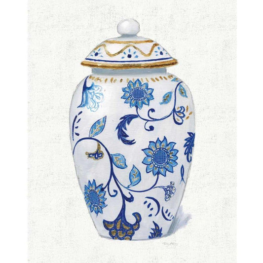 Flora Chinoiserie I Textured Gold Ornate Wood Framed Art Print with Double Matting by Adams, Emily