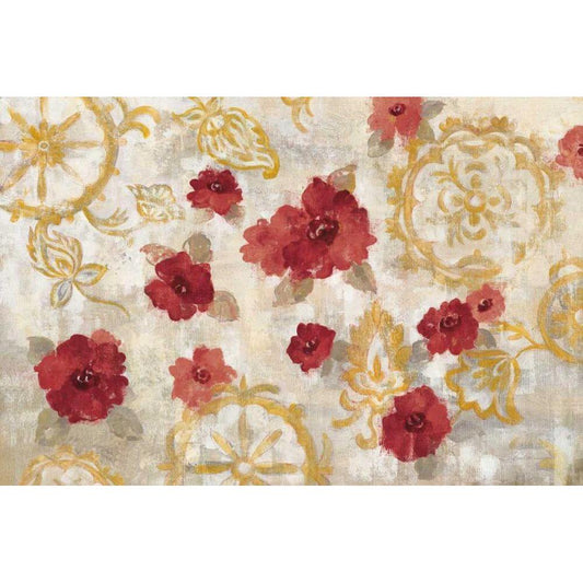 Elegant Fresco Red Gold Gold Ornate Wood Framed Art Print with Double Matting by Vassileva, Silvia