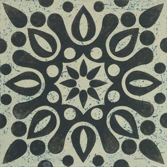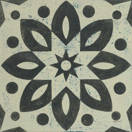 Black and White Tile III Gold Ornate Wood Framed Art Print with Double Matting by Lovell, Kathrine