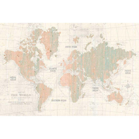 Old World Map Blush and Mint Gold Ornate Wood Framed Art Print with Double Matting by Wild Apple Portfolio