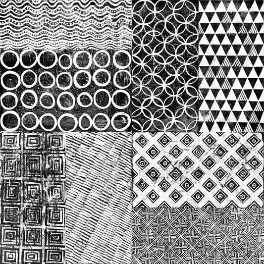 Maki Tile II BW Gold Ornate Wood Framed Art Print with Double Matting by Lovell, Kathrine
