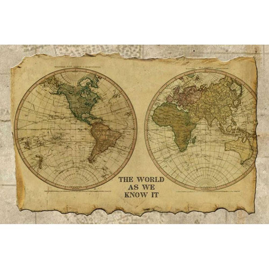 A New Map of the World Gold Ornate Wood Framed Art Print with Double Matting by Schlabach, Sue