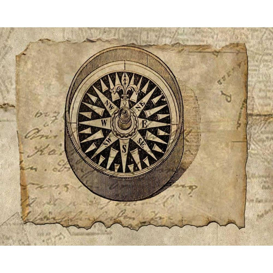Sphere Compass Blue Gold Ornate Wood Framed Art Print with Double Matting by Schlabach, Sue