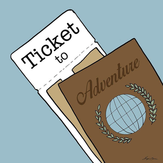 Ticket To Adventure Gold Ornate Wood Framed Art Print with Double Matting by Edwins, Hugo