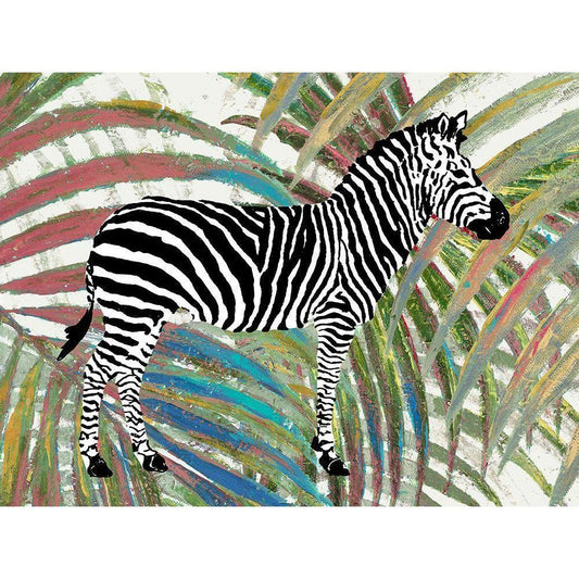 Zebra on Multicolored Leaves Gold Ornate Wood Framed Art Print with Double Matting by Pinto, Patricia