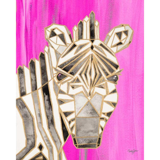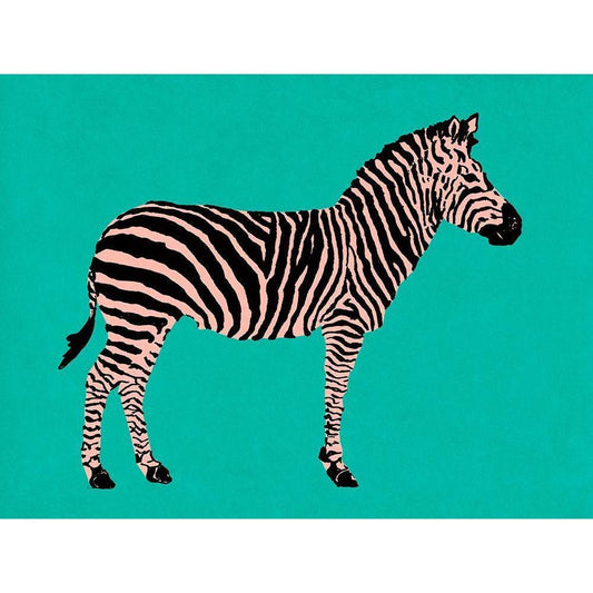 Zebra on Teal Gold Ornate Wood Framed Art Print with Double Matting by Pinto, Patricia