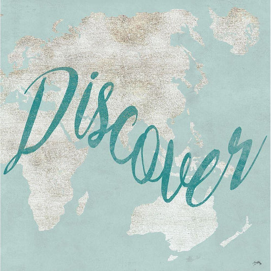 Teal Discover Map II Gold Ornate Wood Framed Art Print with Double Matting by Medley, Elizabeth