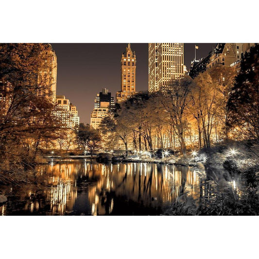 Central Park Glow Gold Ornate Wood Framed Art Print with Double Matting by Frank, Assaf