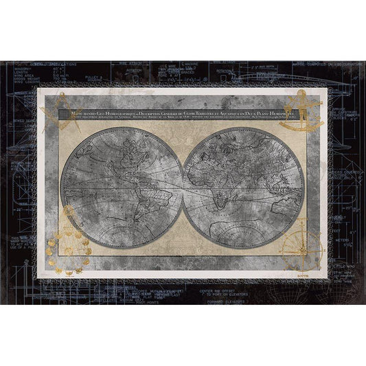 Night World Blueprint Gold Ornate Wood Framed Art Print with Double Matting by Robinson, Carol