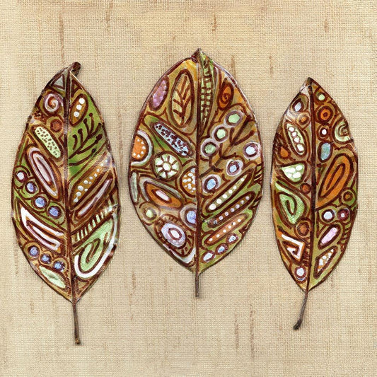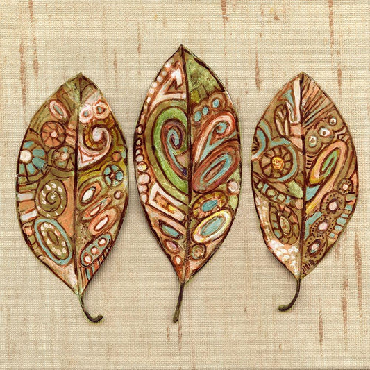 Bohemian Leaf Trio I Gold Ornate Wood Framed Art Print with Double Matting by Pattinian, Merri