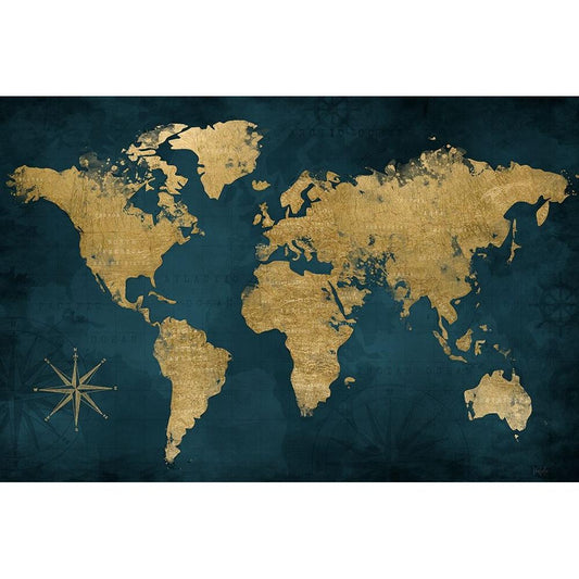 Navy Gold Map Gold Ornate Wood Framed Art Print with Double Matting by Carpentieri, Natalie