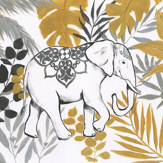 Jungle Elephant Gold Ornate Wood Framed Art Print with Double Matting by Nan