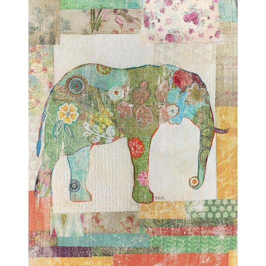 Elephant Montage Gold Ornate Wood Framed Art Print with Double Matting by Tava Studios