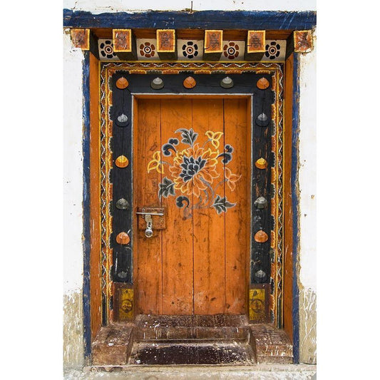 Bhutan Door Gold Ornate Wood Framed Art Print with Double Matting by Runkel, Michael