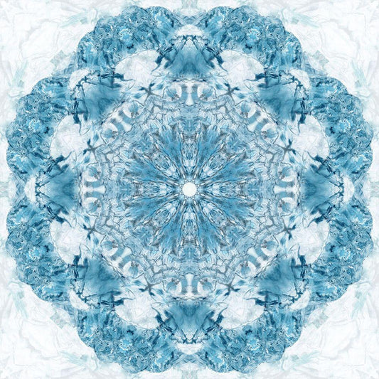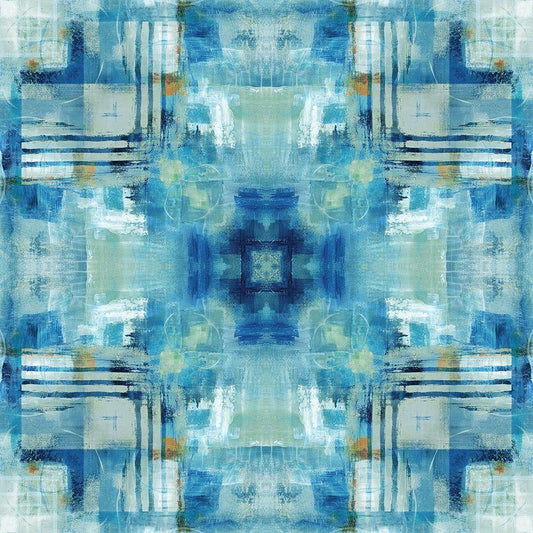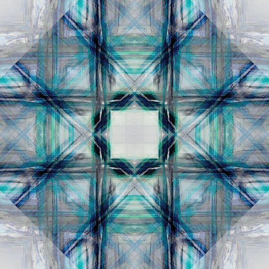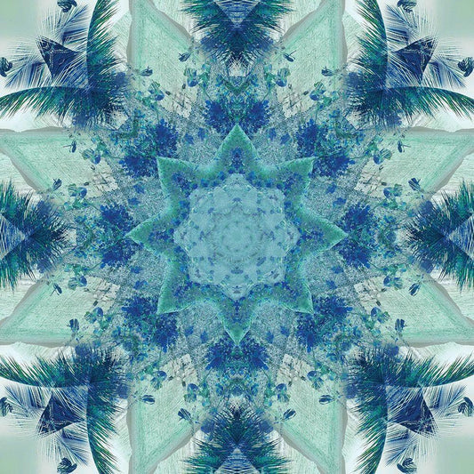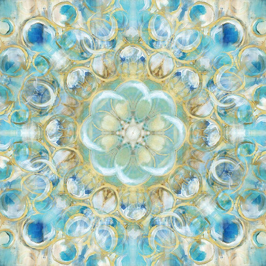 Kaleidoscope Tropic Blues Gold Ornate Wood Framed Art Print with Double Matting by Nan