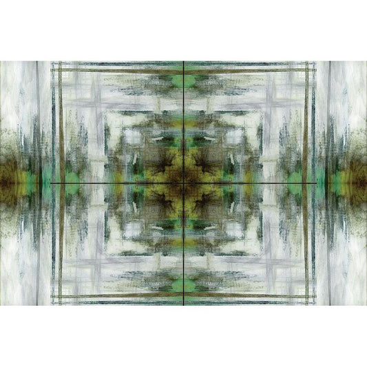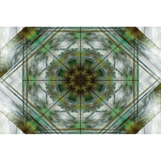 Green Grey Kaleidoscope Gold Ornate Wood Framed Art Print with Double Matting by Nan