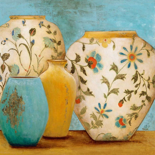 Jeweled Mosaic Gold Ornate Wood Framed Art Print with Double Matting by Tava Studios