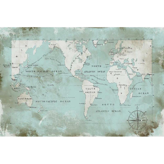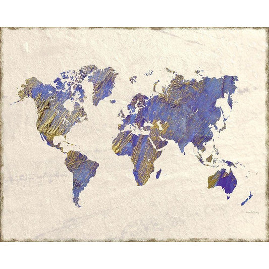 Washy World Map Gold Ornate Wood Framed Art Print with Double Matting by Murray, Amanda