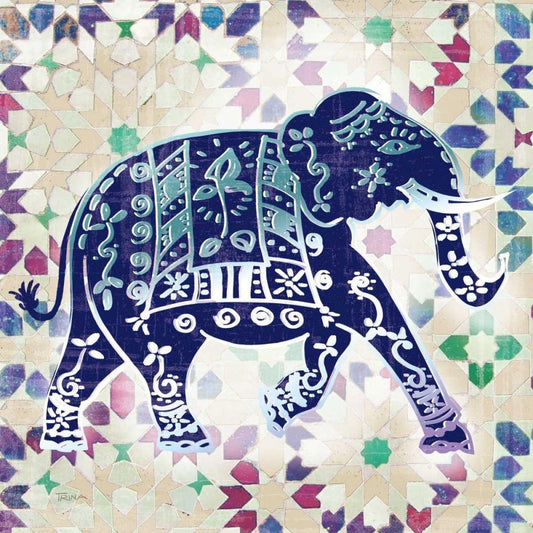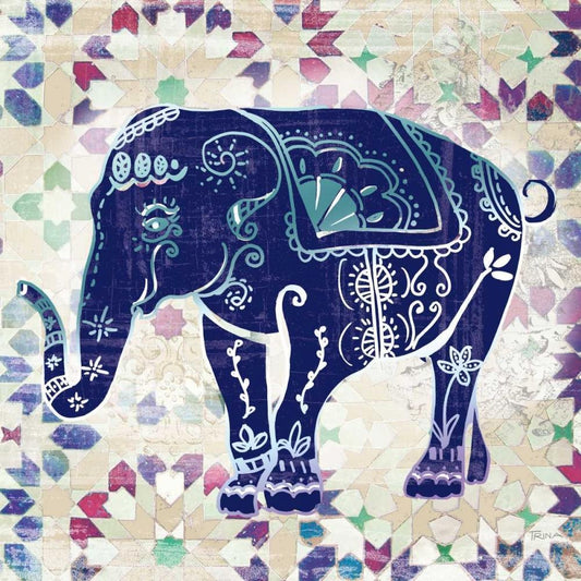 Painted Elephant II Gold Ornate Wood Framed Art Print with Double Matting by Craven, Katrina