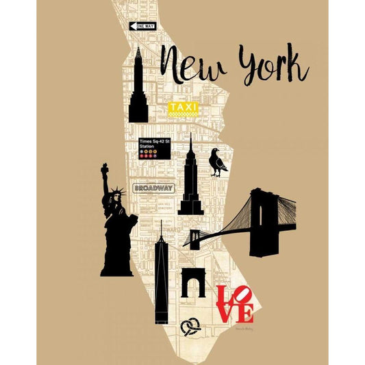 City Graphic Map - Gold Ornate Wood Framed Art Print with Double Matting by Murray, Amanda