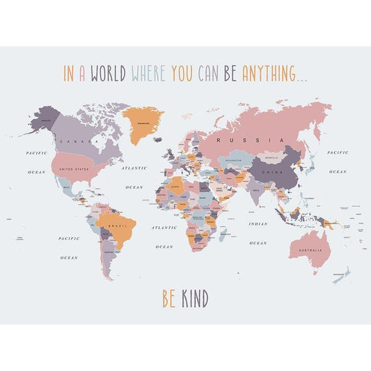 Be Kind World Map 1 Gold Ornate Wood Framed Art Print with Double Matting by Urban Epiphany