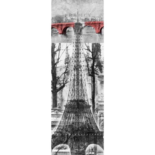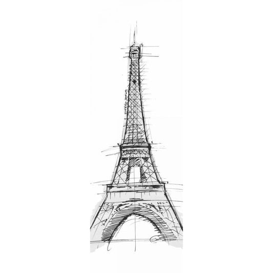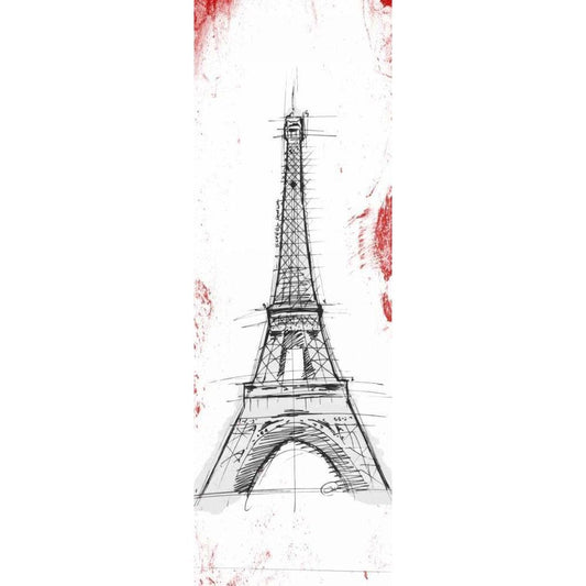 Eiffel Red Pop Sketch Gold Ornate Wood Framed Art Print with Double Matting by OnRei