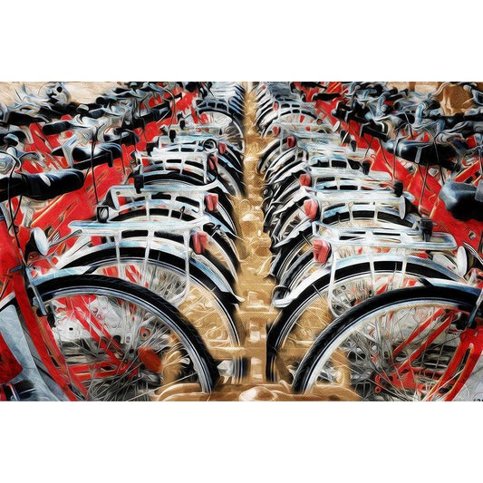 Red Bikes Gold Ornate Wood Framed Art Print with Double Matting by Villa, Mlli
