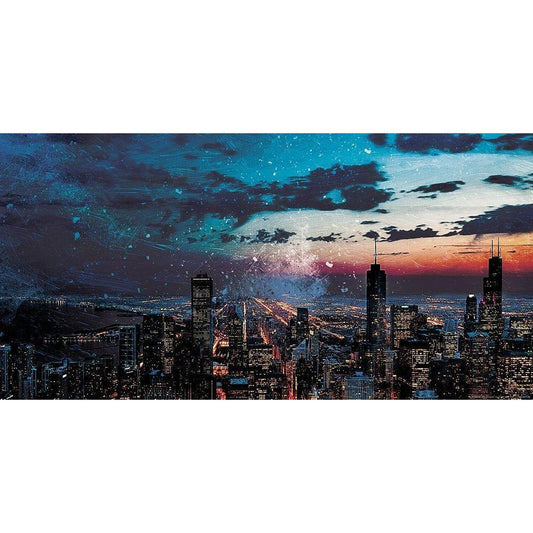Chicago Skyline Hues Gold Ornate Wood Framed Art Print with Double Matting by Villa, Mlli